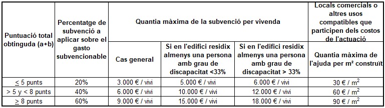 - En funció de la puntuació obtinguda, el percentatge a aplicar i la quantia màxima és: